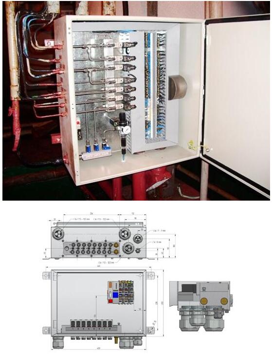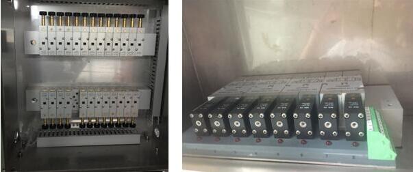 使用電磁閥箱有便于現場統一布線施工。同時電磁閥箱具有一定的防護能力,可防雨防腐蝕,對電磁閥具有較好保護作用,減少設備故障率,提高工藝安全。同時采用集裝式電磁閥箱,方便運檢維保,減少人員的勞動強度和危險性,提高工作效率,降低人工成本。
