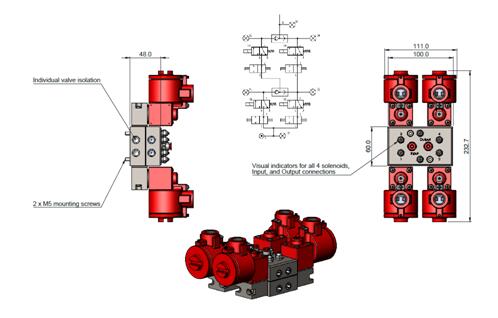 設計思路,運用四個獨立直動式電磁閥以模塊化形式,通過先并聯后串聯的方式實現高安全性的冗余解決方案。